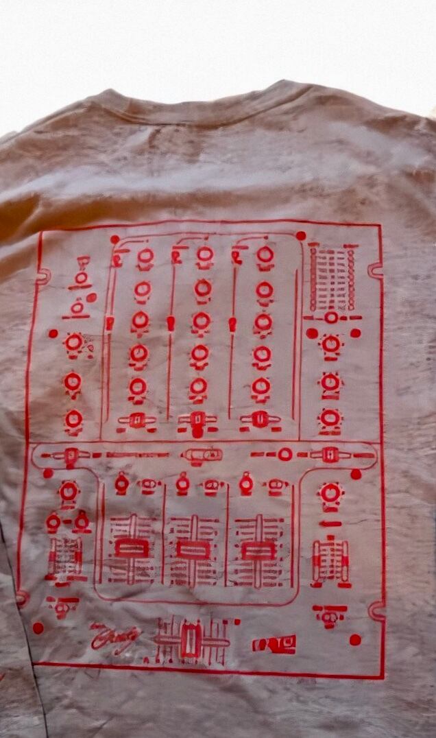 背中にCheekyで使っているDJミキサーRANE empathを赤インクプリント